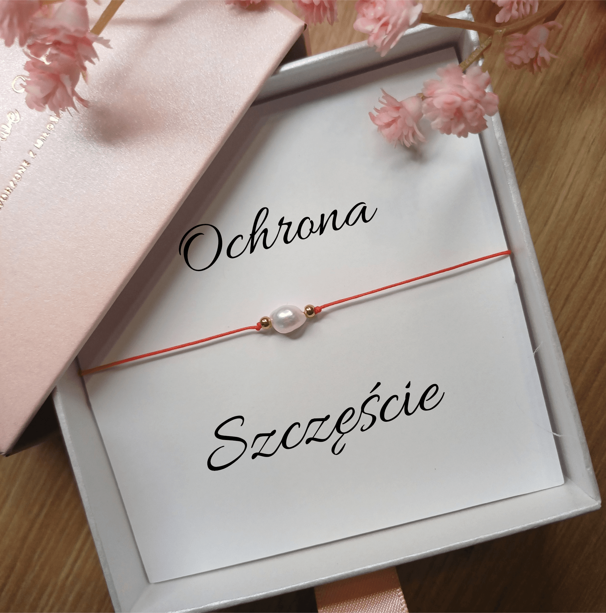 Czerwona nić od wieków uznawana jest za symbol ochrony przed negatywną energią, a perła przyciąga spokój, szczęście i harmonię.
