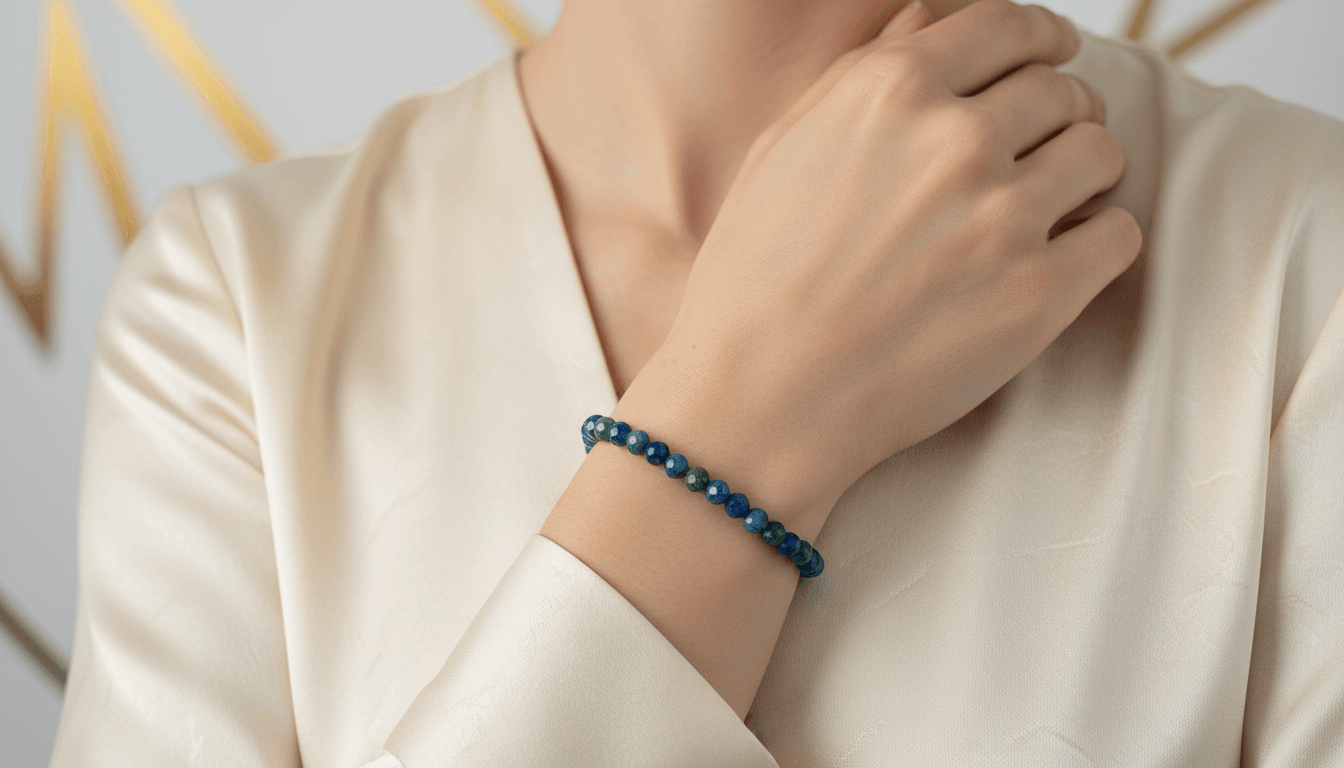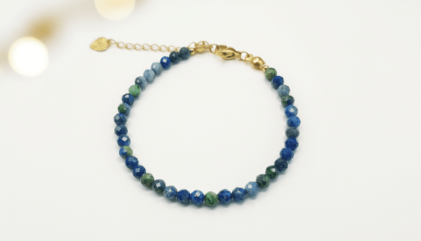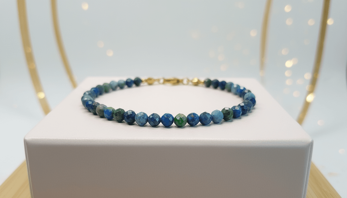 Elegancka i wyjątkowa bransoletka wykonana z naturalnego azurytu – kamienia o głębokiej, intensywnej barwie, który przyciąga uwagę i nadaje biżuterii niepowtarzalnego charakteru.
