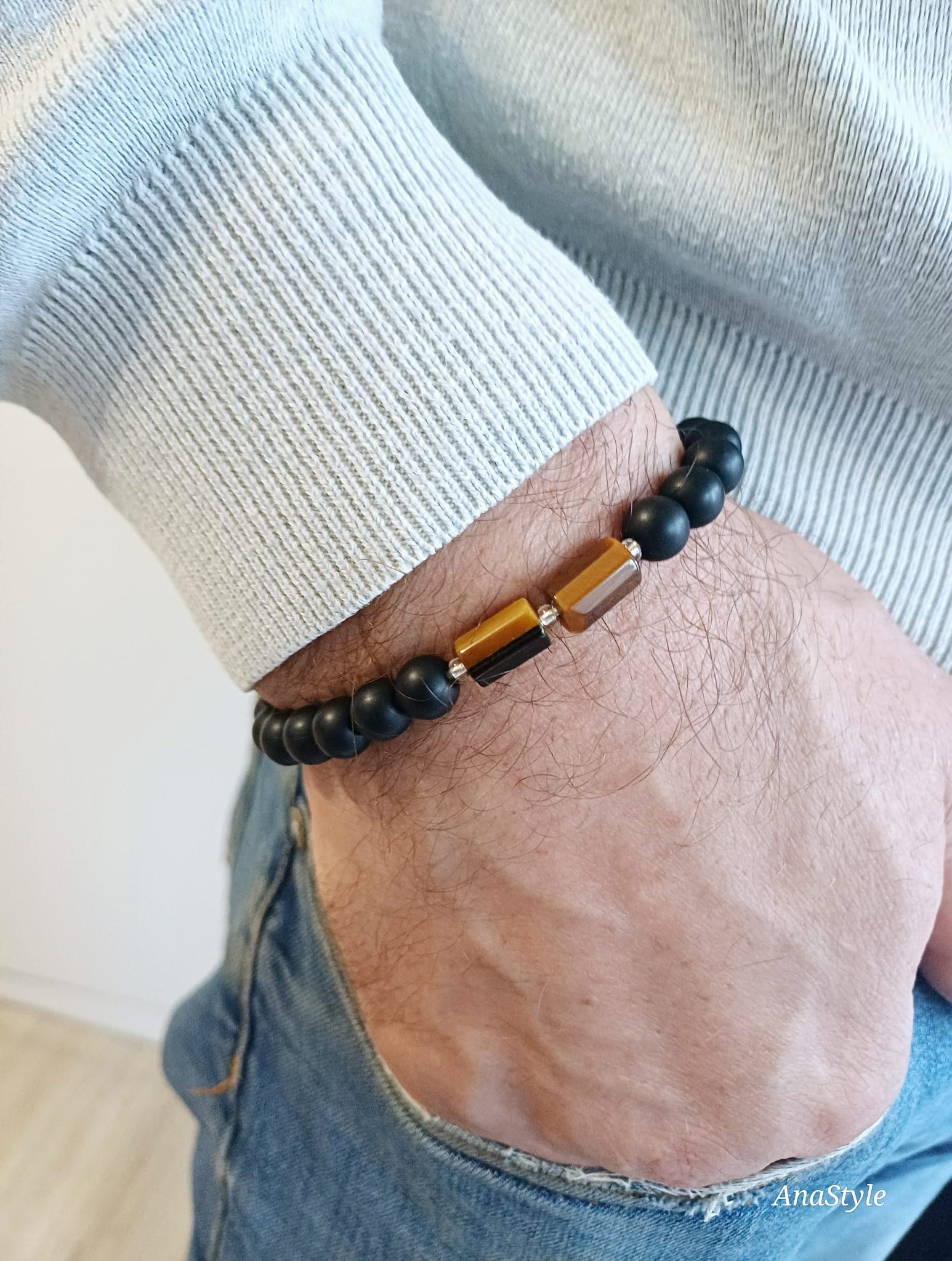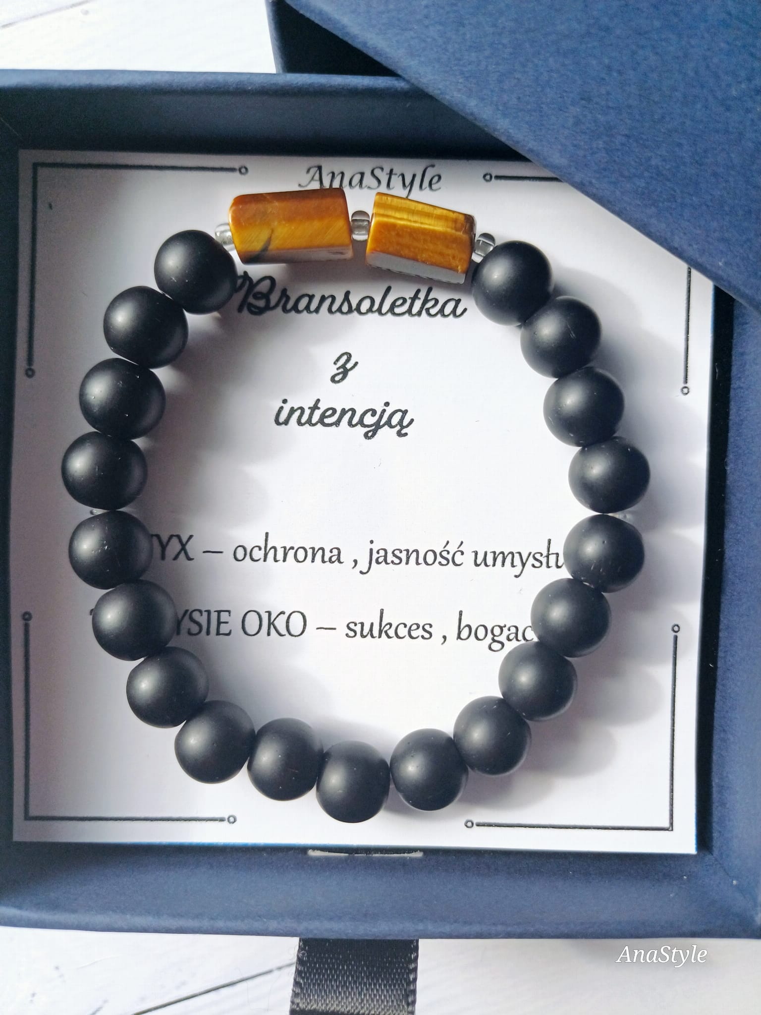 Podkreśl swój charakter dzięki wyjątkowej bransoletce wykonanej z naturalnych kamieni – tygrysiego oka i onyksu. To idealne połączenie siły, ochrony i klasycznego stylu.