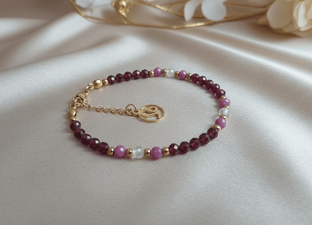 Bransoletka doskonale sprawdzi się jako osobisty talizman lub elegancki prezent. Wykonana z naturalnych minerałów, z dbałością o detale.