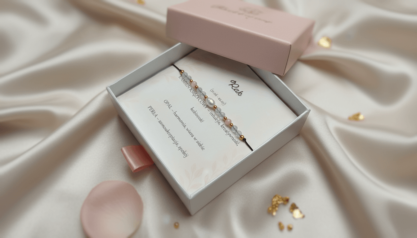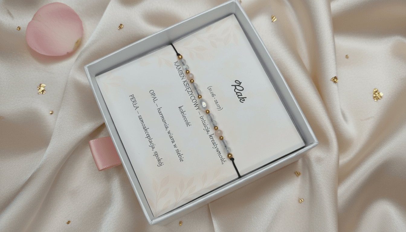 Odkryj magię zodiakalnych akcentów dzięki naszej wyjątkowej bransoletce na sznurku, stworzonej specjalnie z myślą o osobach urodzonych pod znakiem Raka. Ta elegancka bransoletka łączy w sobie naturalne piękno kamienia księżycowego, delikatnych różowych opali oraz subtelnych pereł słodkowodnych, tworząc niepowtarzalny dodatek, który doskonale odzwierciedla wrażliwość i empatię tego znaku.