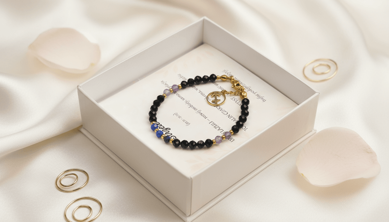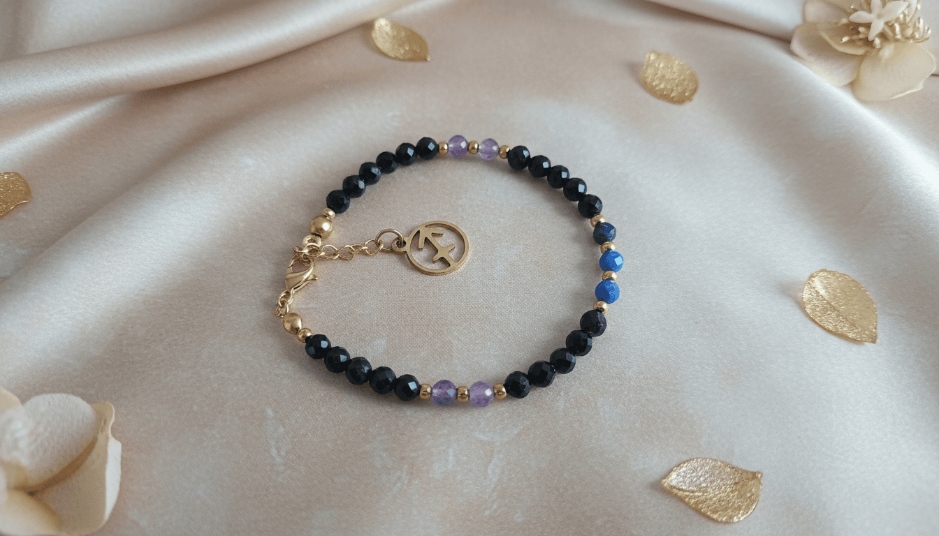 Subtelna bransoletka stworzona z myślą o osobach spod znaku Strzelca. Starannie dobrane kamienie naturalne wspierają optymizm, odwagę oraz jasność myślenia, które są charakterystyczne dla tego znaku.