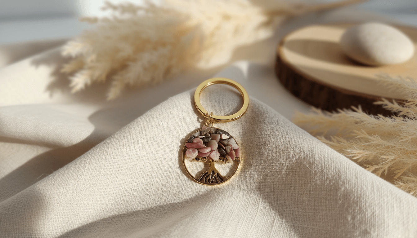 Breloczek Drzewo Życia z Rodochrozytem – Miłość, Uzdrowienie i Wewnętrzna Harmonia