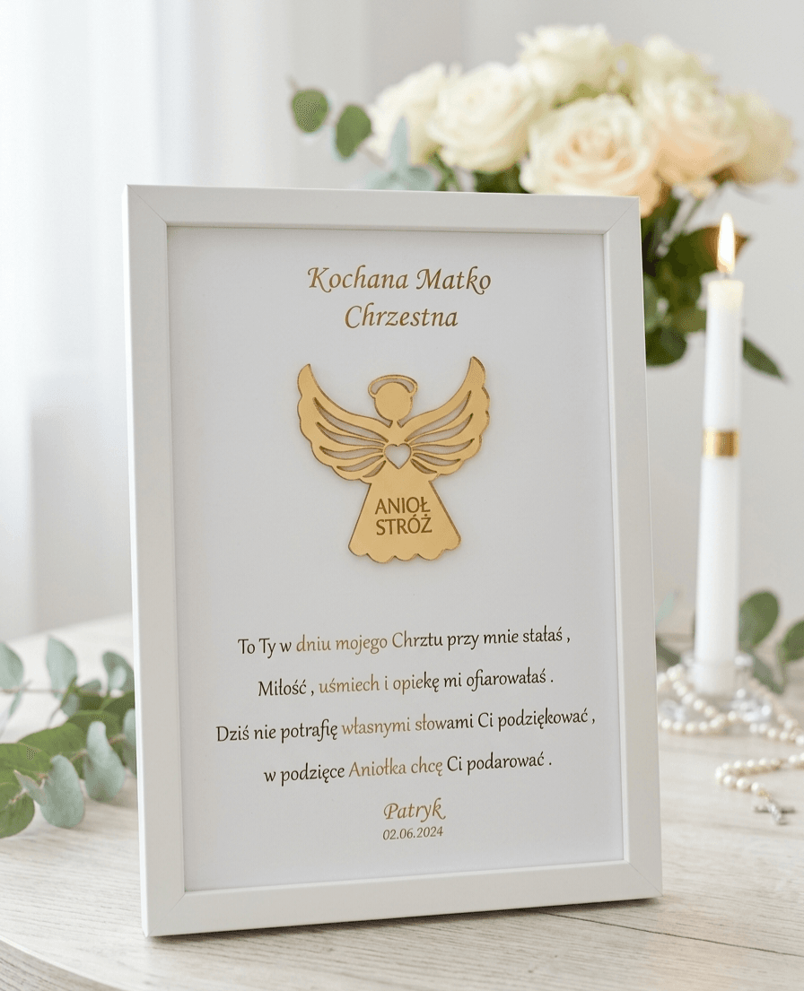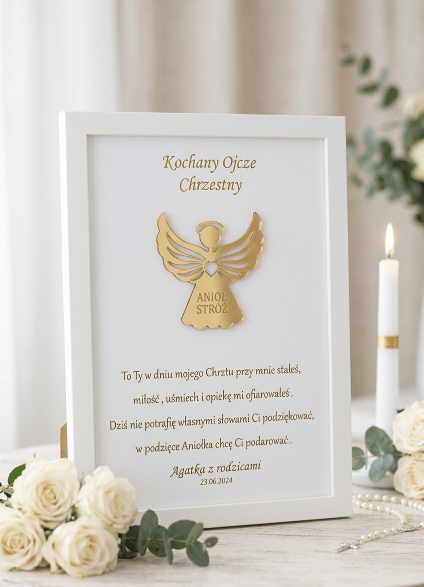 Odkryj wyjątkową pamiątkę dedykowaną na okazje takie jak komunia, chrzest czy bierzmowanie. Nasza personalizowana pamiątka z lustrzanym aniołkiem to elegancki sposób na uświetnienie tych szczególnych momentów w życiu Twojego dziecka oraz podziękowanie bliskim za ich wsparcie.